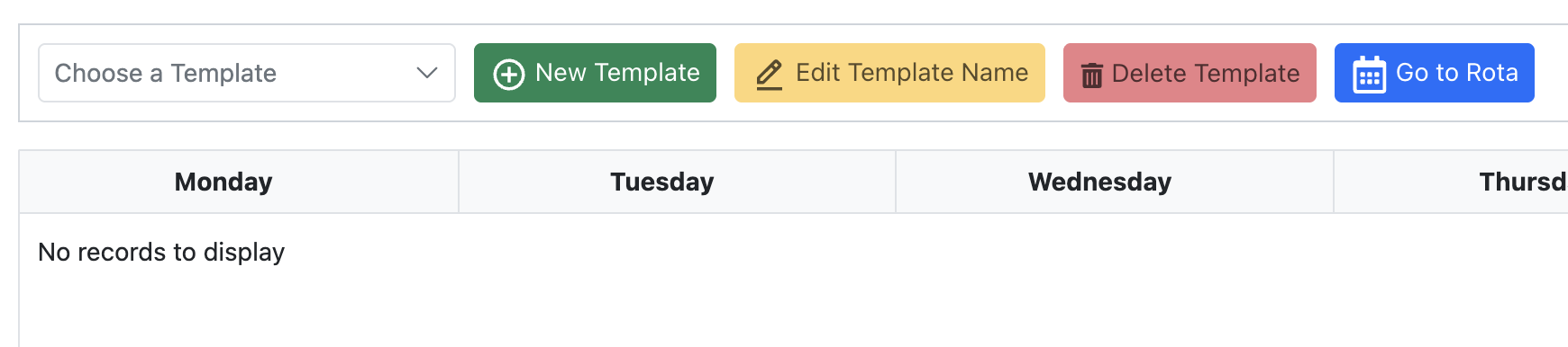 The rota is split into two parts, the templates and the actual rota.