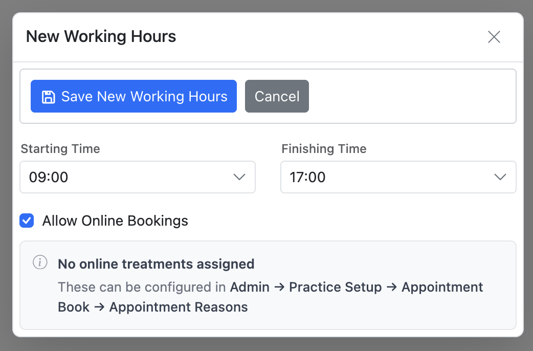 Click the "Save New Working Hours" button.