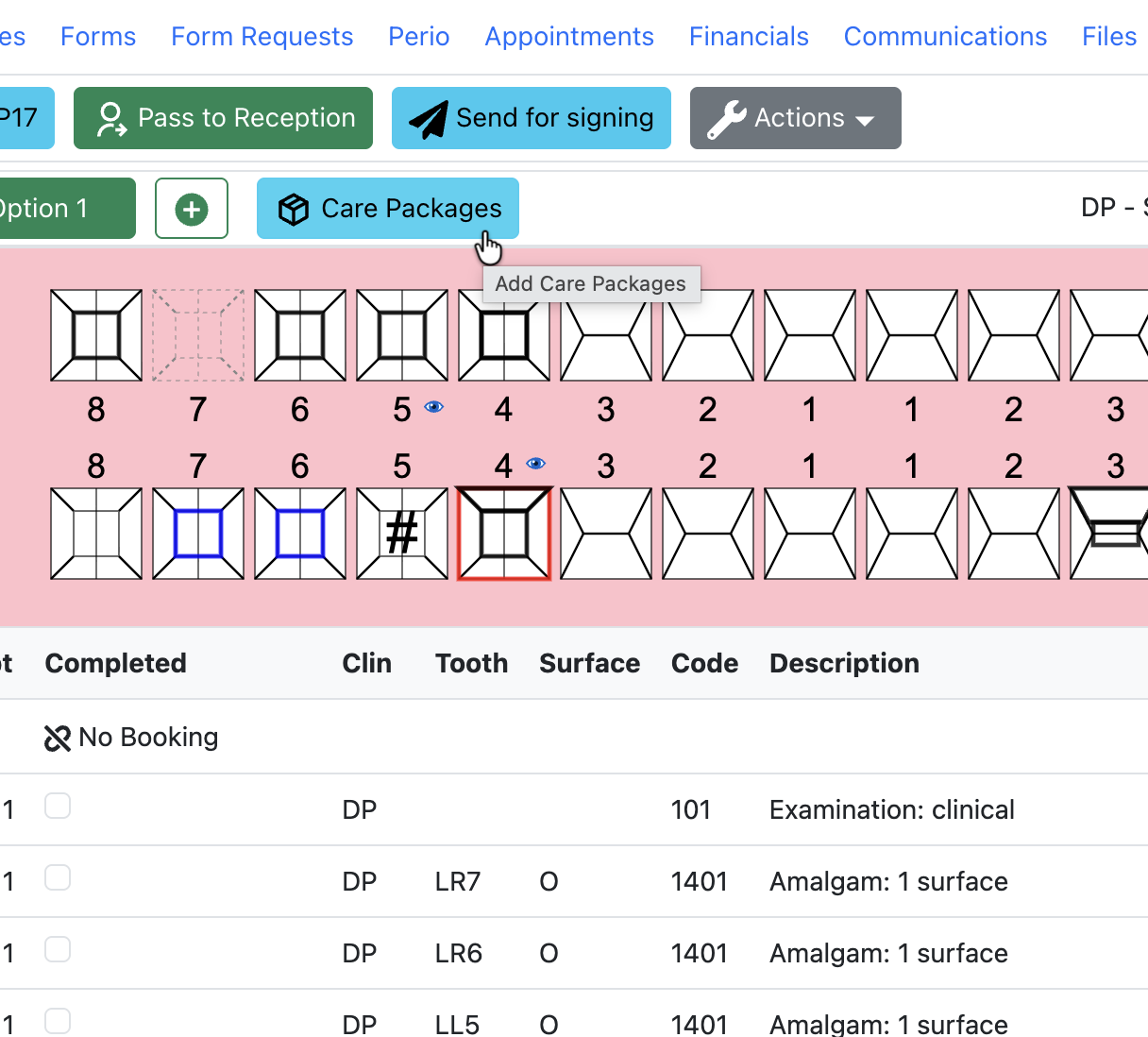 Treatment packages can be combined with each other on the same claim. Some packages allow multiple instances (e.g. up to 3 Extended Restorative packages on one claim).